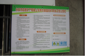 該礦已制定職業危害預防制度、勞動保護用品管理制度、有毒有害氣體管理制度,能按規定要求為職工配備符合國家標準或行業標準的勞動防護用品。鑿巖、裝礦作業時主要采取濕式鑿巖和佩戴防塵口罩等個體防護措施,并對粉塵作業點進行了檢測,粉塵、噪聲未超標。符合規定要求。