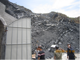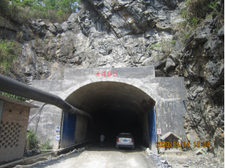 礦山采用平硐開拓,礦井、中段、工作面均具有兩個或兩個以上安全出口。井巷分叉口注明其所在地點或通往地面出口方向,礦山中段及安全出口布置情況均符合設計要求。礦山選用的開拓方式和采礦方法、開采順序符合設計要求,采礦工藝適應礦巖的賦存條件符合設計要求。能執行“敲幫問頂”制度,頂板管理方法可行。天井設有護欄,并配有照明設施,防墜措施符合規定要求。井巷斷面能滿足行人、運輸、通風和安全設施、設備的安裝、維修及施工需要。井巷支護形式及支護質量符合設計要求。目前未發現地面陷落區。礦山能按井巷維修管理制度要求進行維修和管理,井巷掘進符合設計要求。