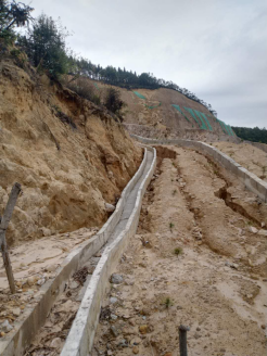 礦區水文地質條件屬簡單類型,大氣降水為采場充水的主要來源;采用的山坡露天臺階開采,可自然排水。因此礦山防排水方案簡單。礦山采用的山坡露天臺階開采,各臺階可自然排水。礦山采場防水方式按照設計在采場外圍挖設有截洪溝,坡度根據實際地形而定且均大于1%。水溝斷面為漿砌梯形結構,規格為:下寬0.30.4m、上寬0.50.6m、深0.4m。采場排水良好,防洪溝設置能滿足實際排水需求。